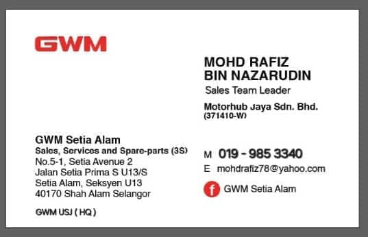 Sales Team Leader at GWM Setia Alam Branch โจ With over 20 years of experience in the automotive industry, including roles in car technical support, customer relations, sales advising, and sales management. Passionate about helping customers find the best deals. Contact me for the latest promotions and to book a test drive.