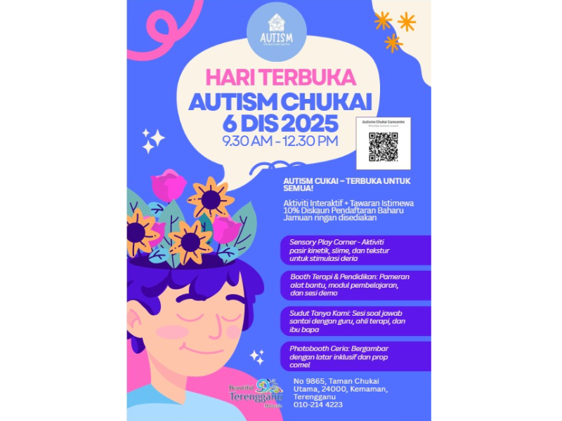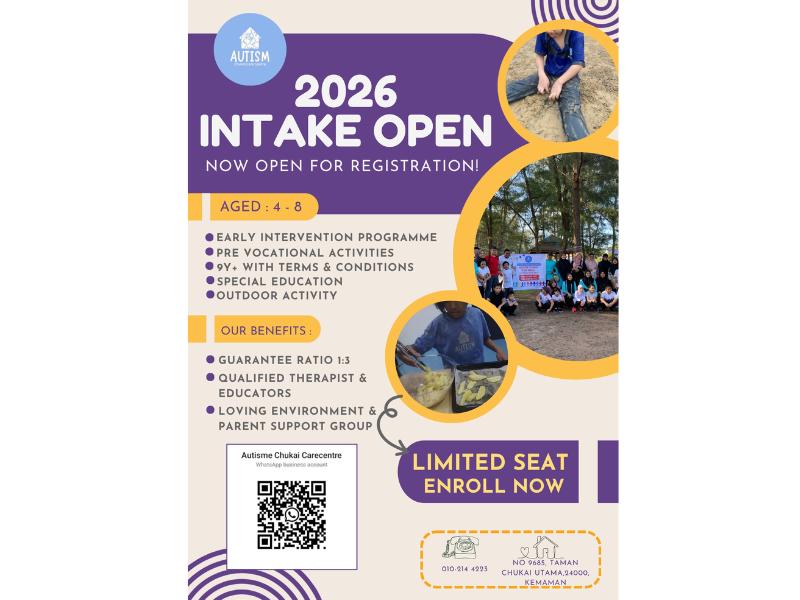Help your child reach their fullest potential with our professional guidance and care. Enrollment for the Autism Intervention Programme at Chukai Centre is now open. Limited slots available — register today! 📲Questions or sign-up? Whatsapp us at 010-214 4223